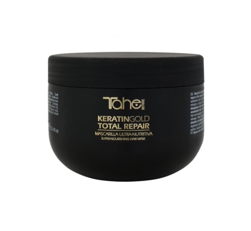 Mascarilla ultra-nutritiva reconstituyente con Keratina y Oro líquido que repara la fibra capilar, Aceite de Argán que protege y suaviza, y Ceramidas que refuerzan la estructura y aportan resistencia.